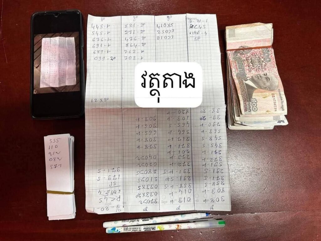 ក្នុងការបង្ក្រាប”ស្នាក់ការល្បែងឆ្នោតកន្ទុយលេខវៀតណាម”ត្រង់ចំណុចភូមិកោះរះលើ ឃុំកោះរះ ស្រុកល្វាឯម ខេត្តកណ្តាល