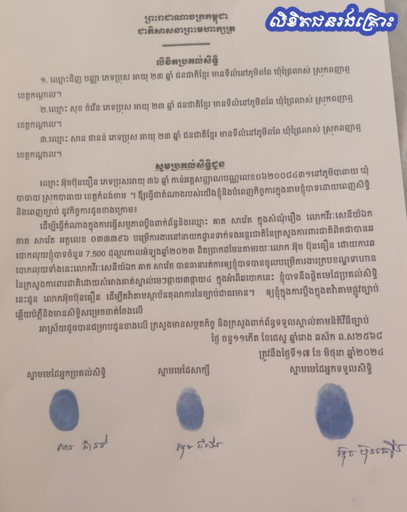 *យោងលិខិតប្រគល់សិទ្ធិ ដែលផ្ញើមកកាន់”ដើមរាំង”បានឱ្យដឹងថា ជនរងគ្រោះទាំង៣នាក់៖