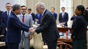 (ភ្នំពេញ)៖.ថ្ងៃទី០២ ខែធ្នូ ឆ្នាំ២០២៥ សម្តេចមហាបវរធិបតី ហ៊ុន ម៉ាណែត នាយករដ្ឋមន្ត្រី នៃកម្ពុជា បានអនុញ្ញាតឱ្យ គណៈប្រតិភូក្រុមប្រឹក្សាធុរកិច្ច អាម៉េរិក-អាស៊ាន ដឹកនាំដោយលោក Ted Osius អនុប្រធានជាន់ខ្ពស់ និងជានាយកគ្រប់គ្រងប្រចាំតំបន់ នៃUSABC អមដំណើរដោយលោកស្រី Bridgette L. Walker ភារៈធារីនៃស្ថានទូតសហរដ្ឋអាម៉េរិក ប្រចាំព្រះរាជាណាចក្រកម្ពុជា ចូលជួបសម្តែងការគួរសម និងពិភាក្សាការងារ នាព្រឹកថ្ងៃទី០២ ខែធ្នូ ឆ្នាំ២០២៥ នៅវិមានសន្តិភាព រាជធានីភ្នំពេញ៕