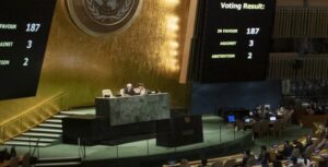 មហាសន្និបាតអង្គការសហប្រជាជាតិ (UNGA) បានអនុម័តយ៉ាងលើសលប់លើសេចក្តីសម្រេចមួយ ដោយបញ្ជាក់ជាថ្មីអំពីសិទ្ធិសម្រេចដោយខ្លួនឯងរបស់ប្រជាជនប៉ាឡេស្ទីន និងសិទ្ធិរបស់ពួកគេលើធនធានធម្មជាតិ នៅក្នុងទឹកដីប៉ាឡេស្ទីនដែលត្រូវបានកាន់កាប់ រួមទាំងក្រុងយេរូសាឡឹមខាងកើត។