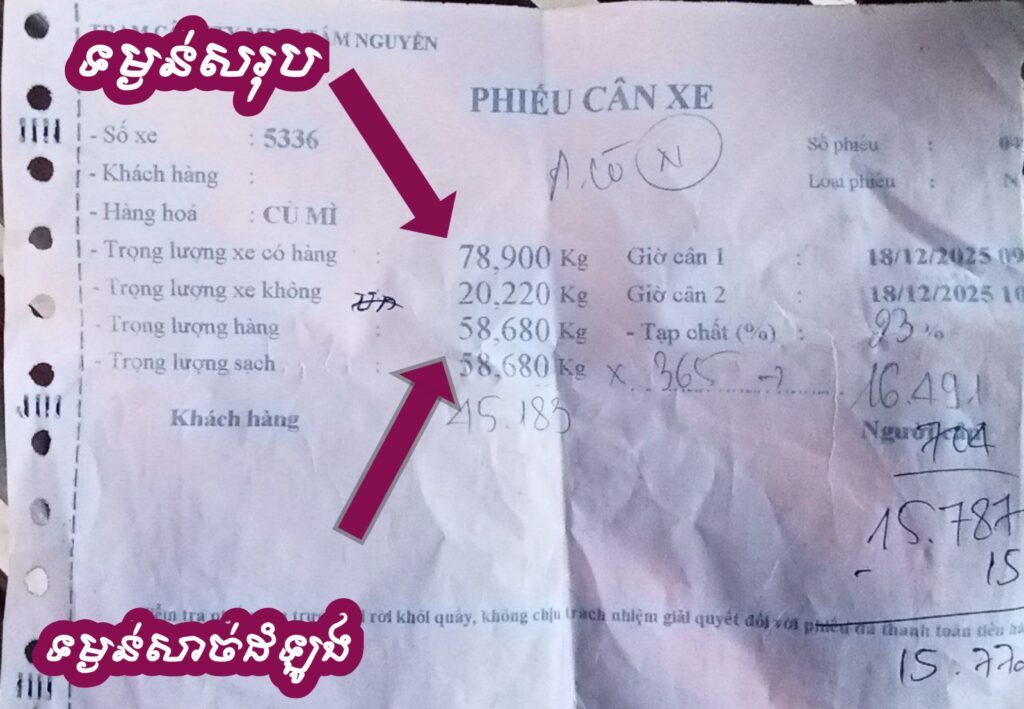 ក្នុងនោះ ពេលខ្លះពួកគាត់ បើកតាមផ្លូវជាតិលេខ៧ ទម្រាំដល់កន្លែងលក់ គឺត្រូវបង់លុយឱ្យមន្ត្រី នៃស្ថានីយថ្លឹងរថយន្តជាបន្តបន្ទាប់!។