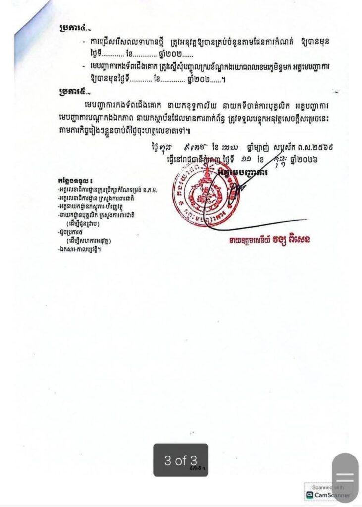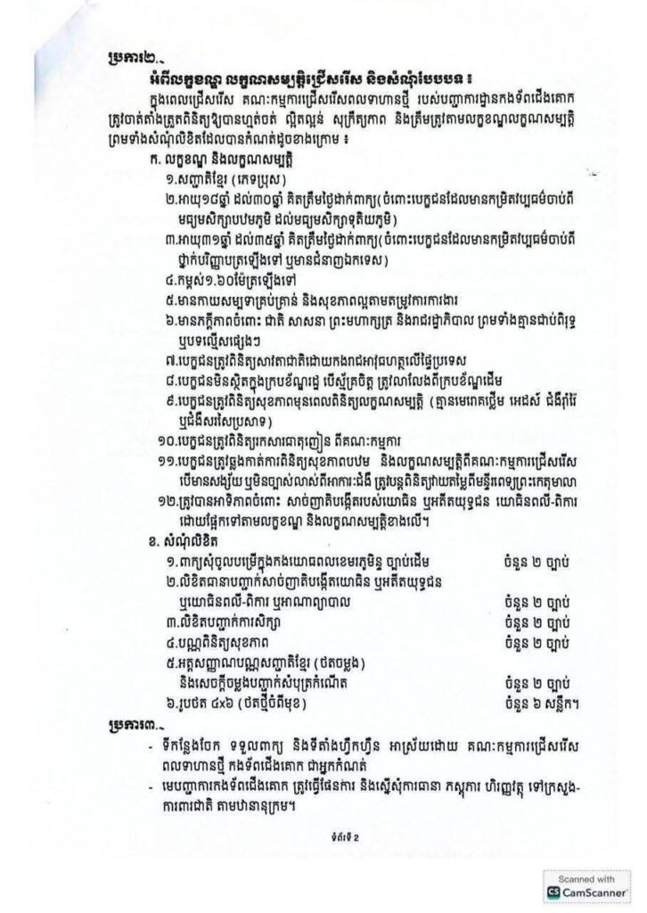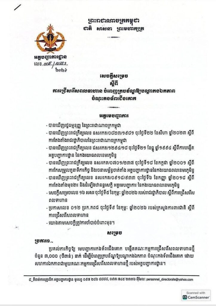 នេះបើយោងតាម សេចក្ដីសម្រេចស្ដីពី ការជ្រើសរើសពលទាហាន បំពេញក្របខ័ណ្ឌ ឱ្យបណ្ដាកងឯកភាពចំណុះកងទ័ពជើងគោក ចុះកាលបរិច្ឆេទនៅថ្ងៃទី១១.០២.២០២៦៕