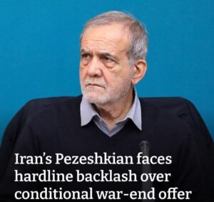 បន្ទាប់ពីការកត់សម្គាល់ របស់លោក Pezeshkian ប្រធានាធិបតីអាមេរិក លោក Donald Trump បានសរសេរនៅលើ Truth Social ថា«ប្រធានាធិបតីនៃរបបអ៊ីរ៉ង់ថ្មី»បានស្នើសុំបទឈប់បាញ់។